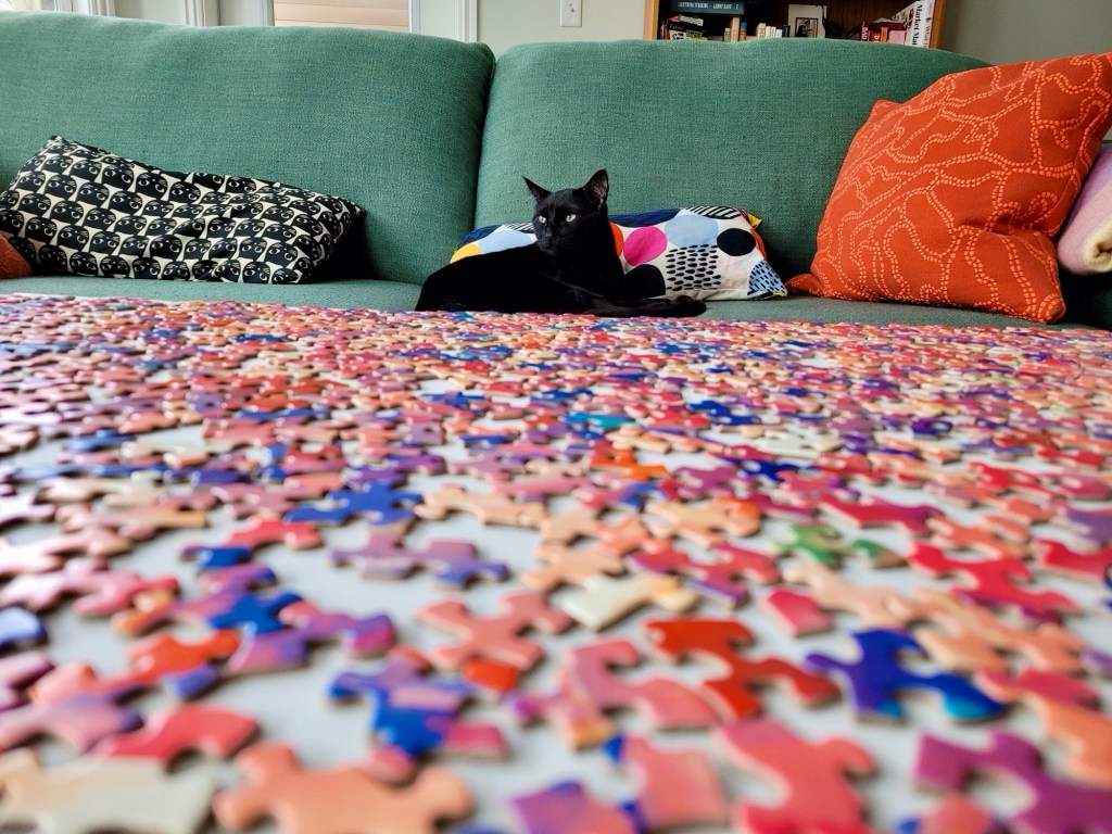 And the end result, is a pinkish, masterpiece of a puzzle, that is complete, in brand new condition, and will hold a special spot in my puzzle collection. She truly is a beauty and both the cats agree!