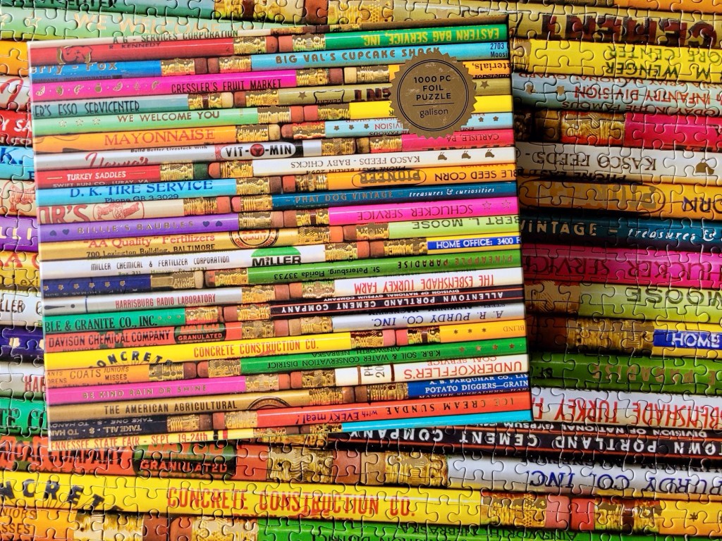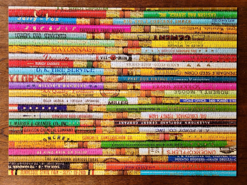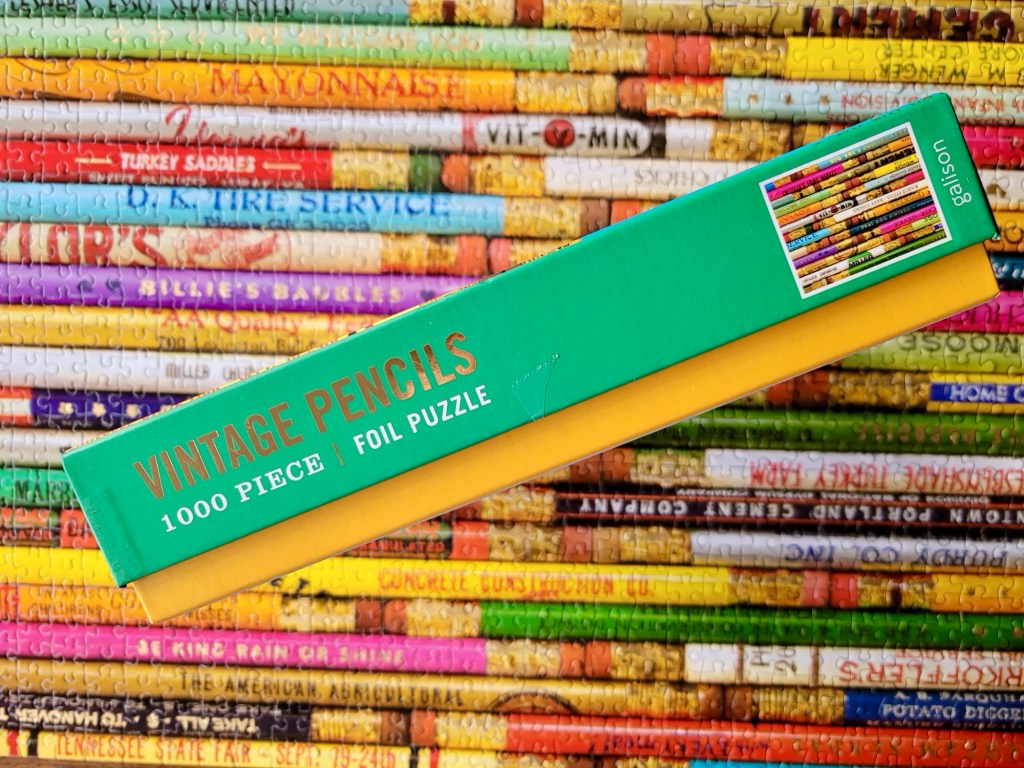 This vintage pencils puzzle is 1000 pieces, complete and found at the thrift store, she’s a beauty!