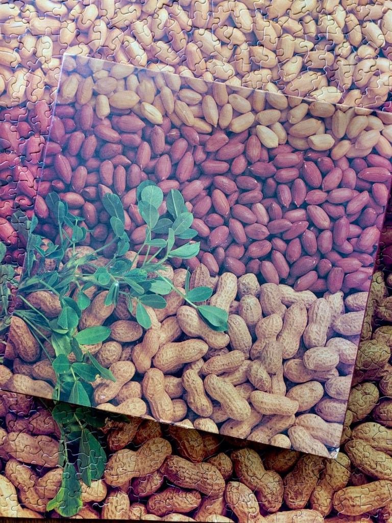 In fact, there were a lot of similarities: their boxes were about the same size, they had a random cut to their pieces, more random than Springbok, mind you. The pieces were backed with green cardboard and they are thick and sturdy.