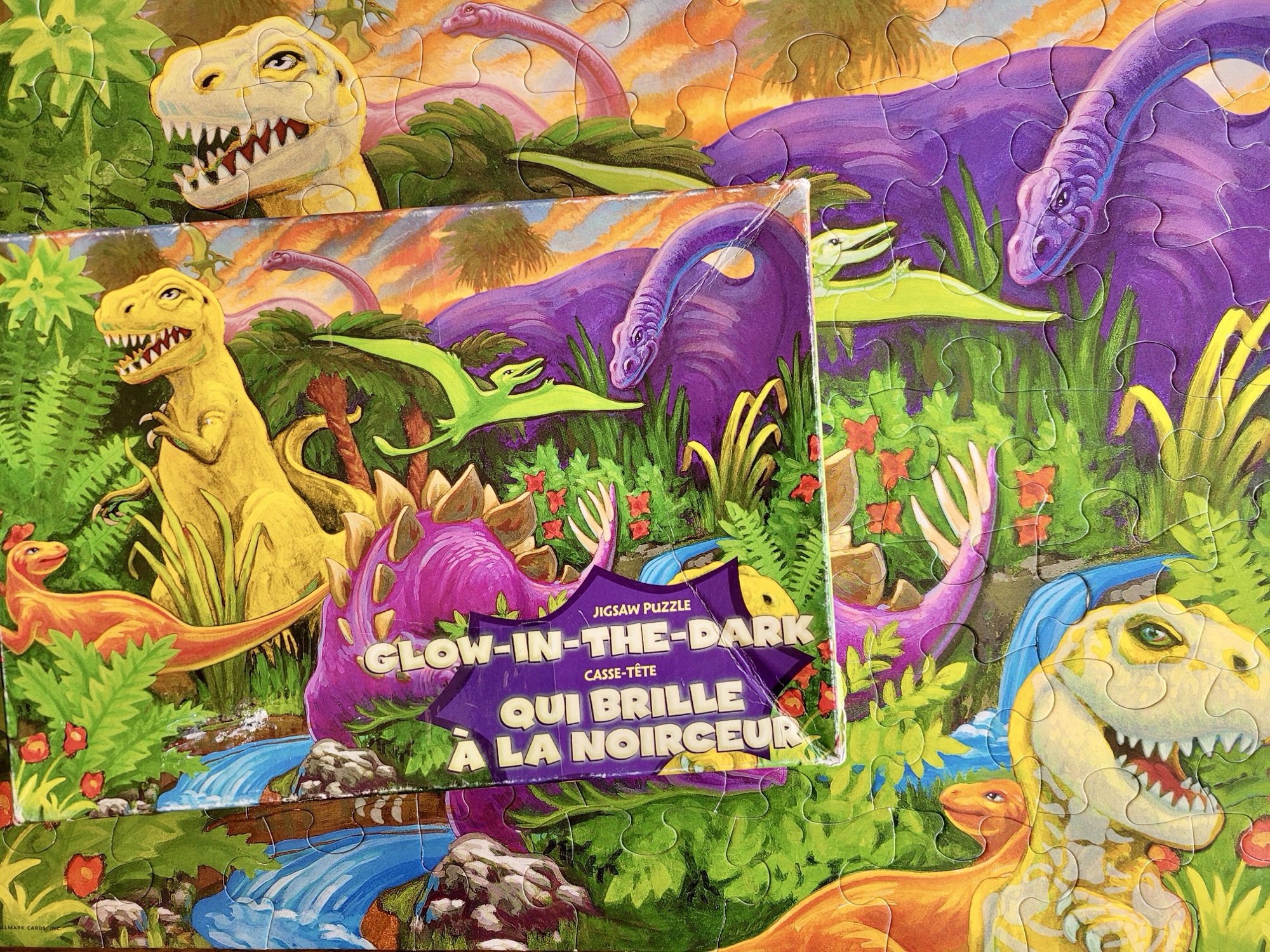 My first one is this super fun vintage Springbok that glows in the dark! Dinosaurs are always a favourite topic for me, so when I saw this kids puzzle from 2000, I couldn’t say no. Sure it’s only 60 pieces and they are about the size of my hand, but still a super fun and cool puzzle.