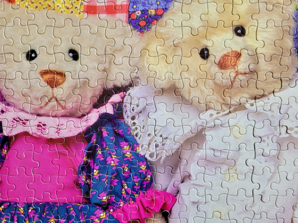 Ha ha, yes this puzzle did jump the queue, to the front of the line. The colours just looked so fun and the teddy bears’ hilarious expressions were irresistible to me.