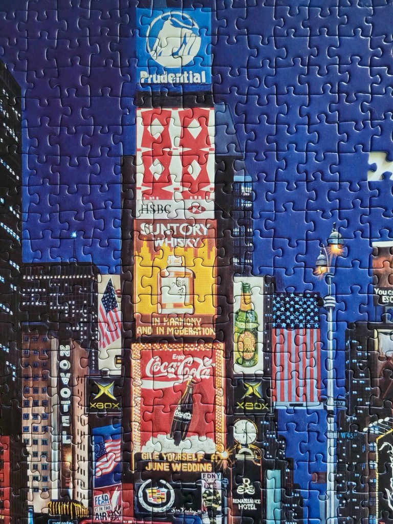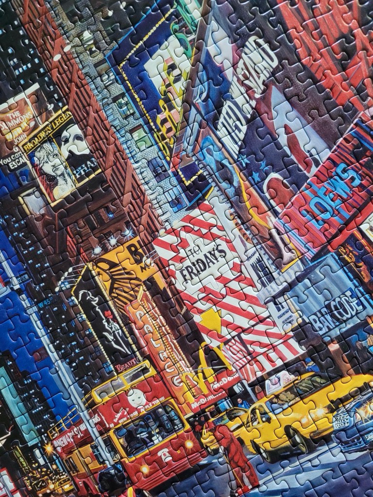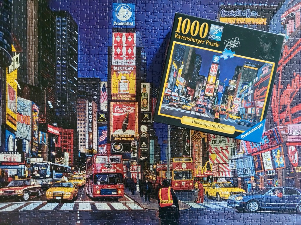 My friend passed this puzzle on to me, a newer 1000 piece Ravensburger of Times Square, New York City.