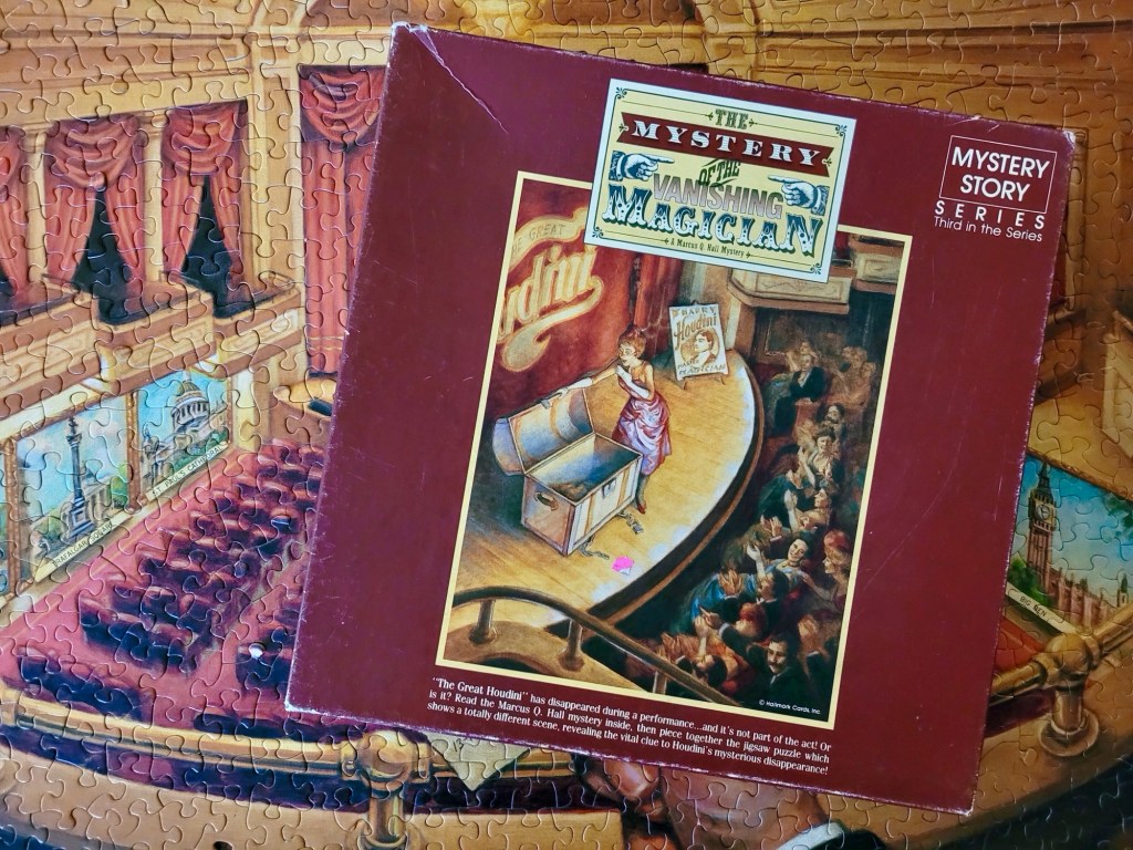 This is another 90s puzzle, missing two pieces and was dropped back off at the thrift store for someone more patient than I am. Hopefully they figured out what happened to Houdini!
