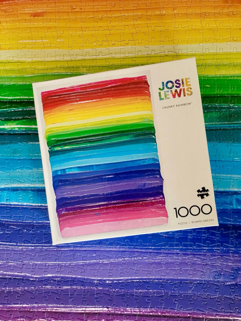 It’s like a layered cake! This puzzle is called Chunky Rainbow and it’s by the popular Instagram artist Josie Lewis. She plays mostly with colour and arranging colours in a gradiated rainbow order. It’s the organizational type’s dream.