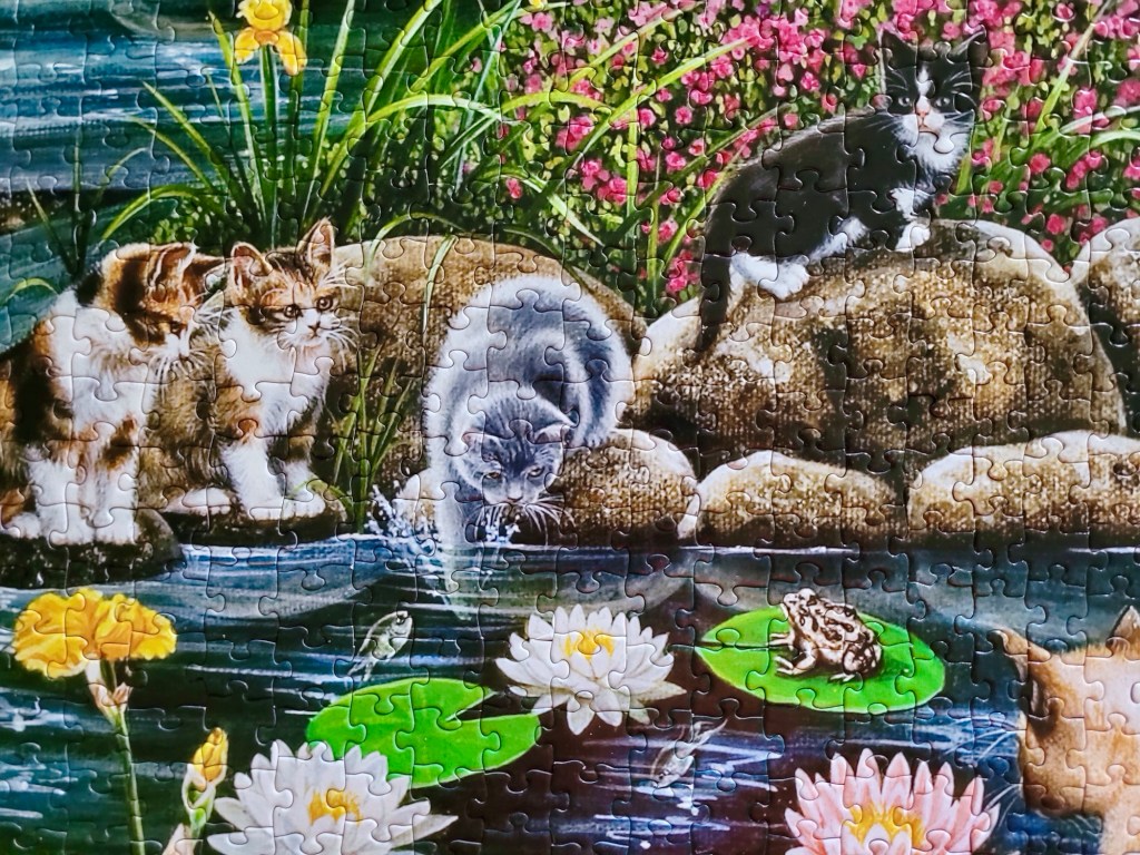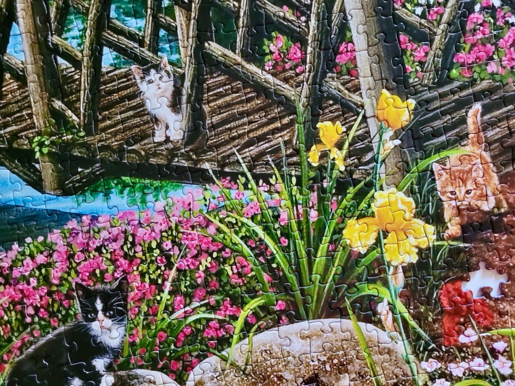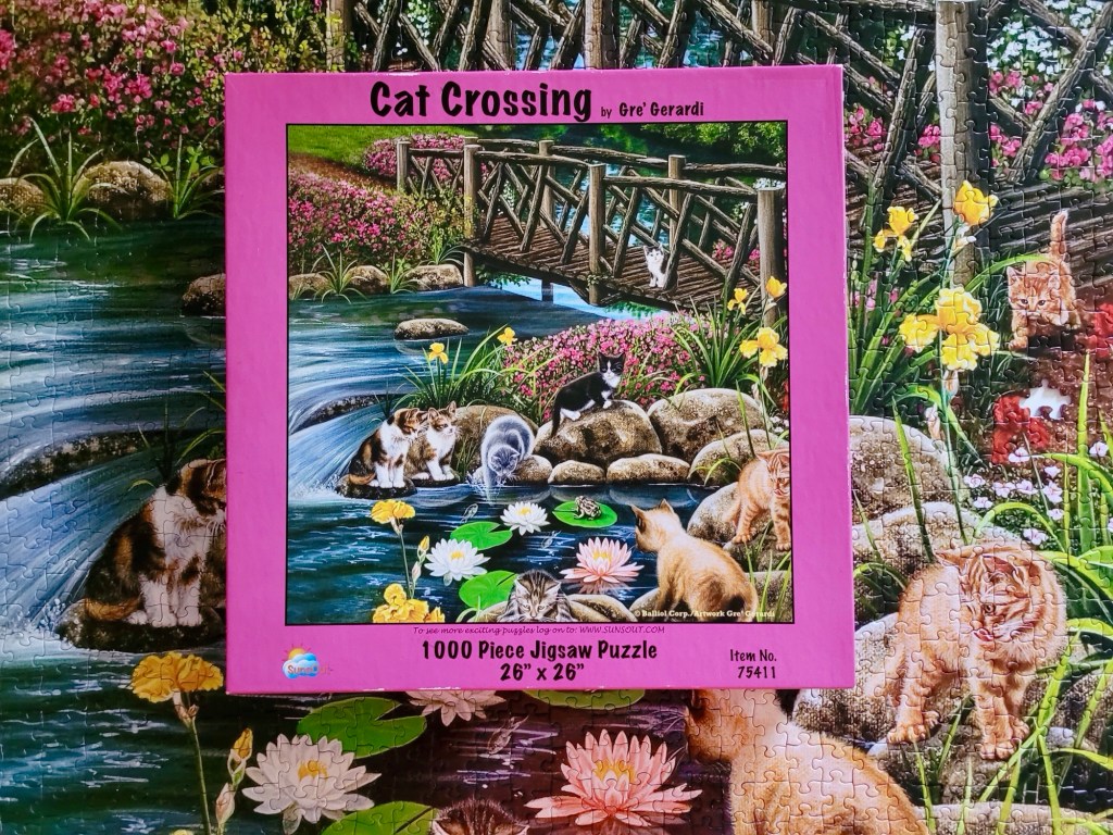 This was a 1000 piece puzzle from SunsOut, Joe picked this up from a thrift shop for me. He certainly knows what I’d get into! Missing just one piece but there were 999 other pieces of adorable kitty cat fun.