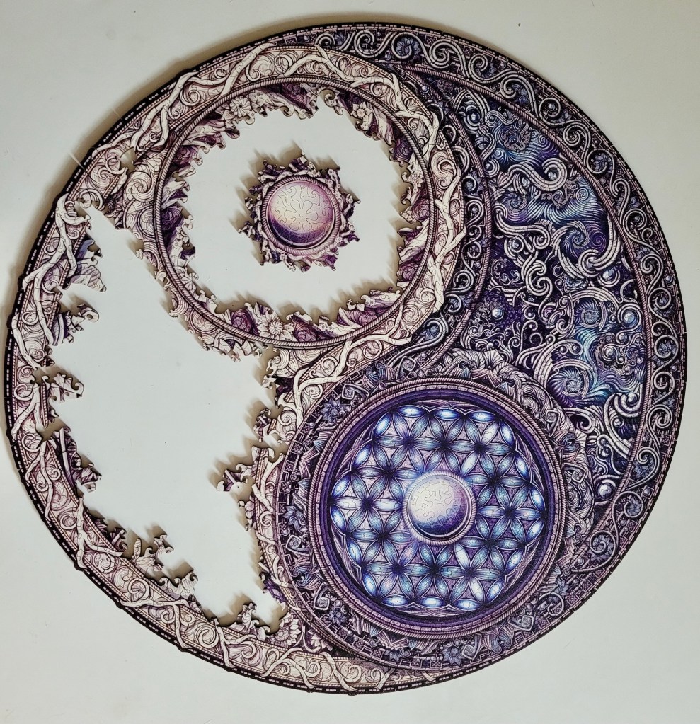 The quality just cannot be beat, this was such a pleasure to assemble. It was also a very good challenge. Each side was almost its own puzzle and they connected just by a few points. There was also a theme in puzzle cut for each yin and yang side.