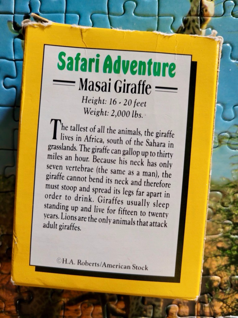 And Giraffes, very majestic (with those legs, baby!) and very elegant. The boxes were pretty battered but the puzzles were perfect. They were in good shape and that fit is just perfect.