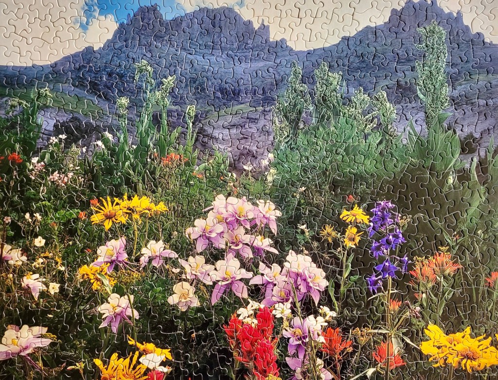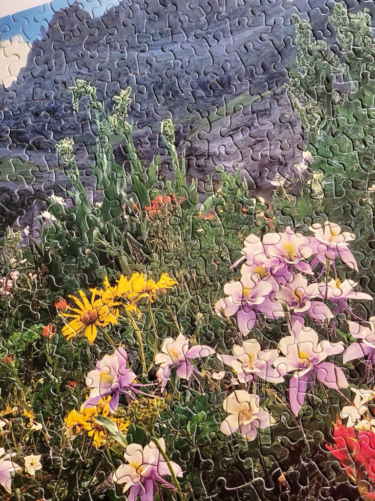 There was something so beautiful about this puzzle. The colours were very muted in some areas but so vibrant in others. The flowers were also so crisp in the photography, I was just drawn in.