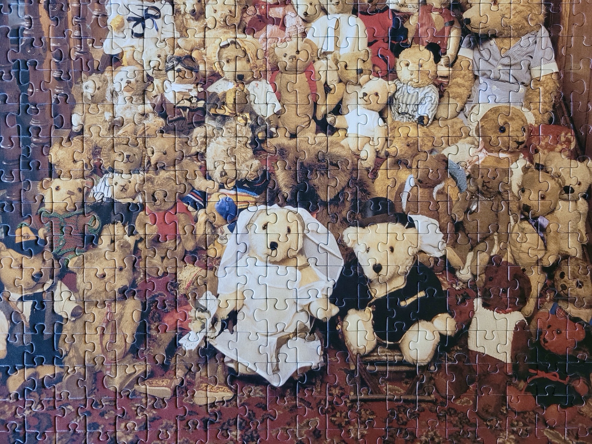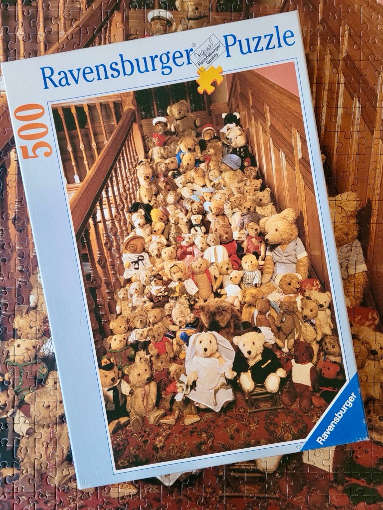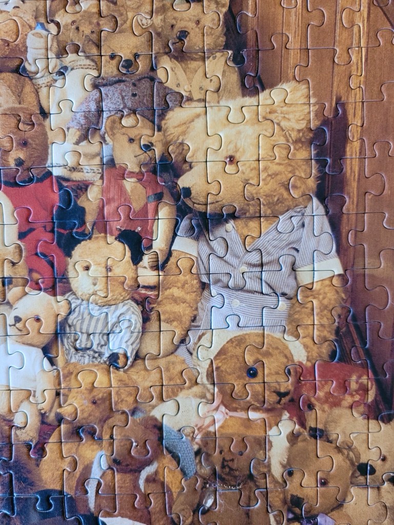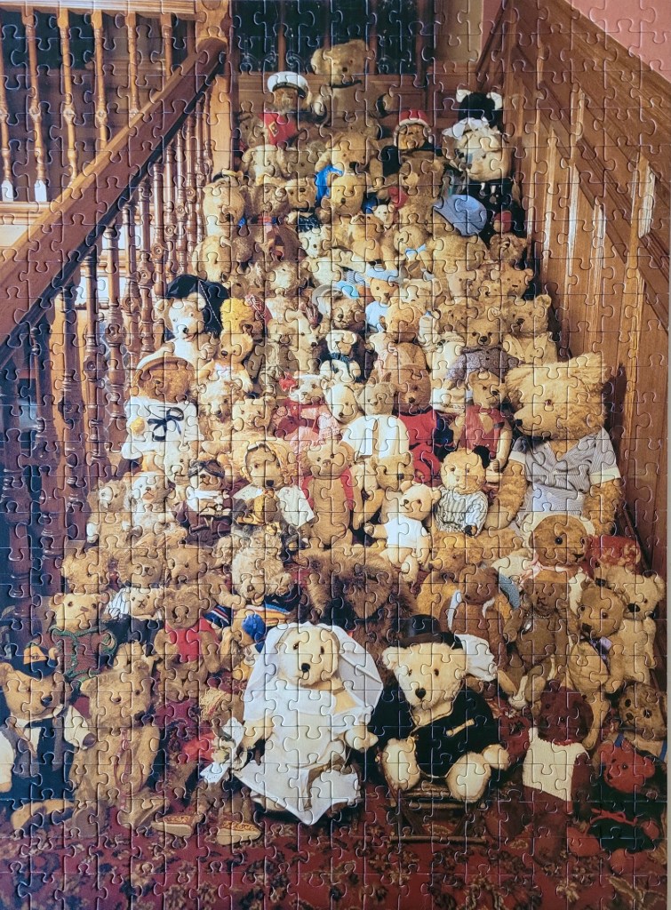 I picked this up, because I just thought this was the most bizarre puzzle image. Many of these teddies look a lot disheveled and their facial expressions are absolutely hilarious.