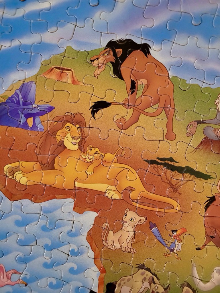 I had fun going down memory lane for the 200 piece journey. I remember being pretty scared of the hyenas, the scene where Scar and the hyenas sing that song in their lair or whatever that place was. The glowing eyes and the silhouetted hyenas on the cliffs.