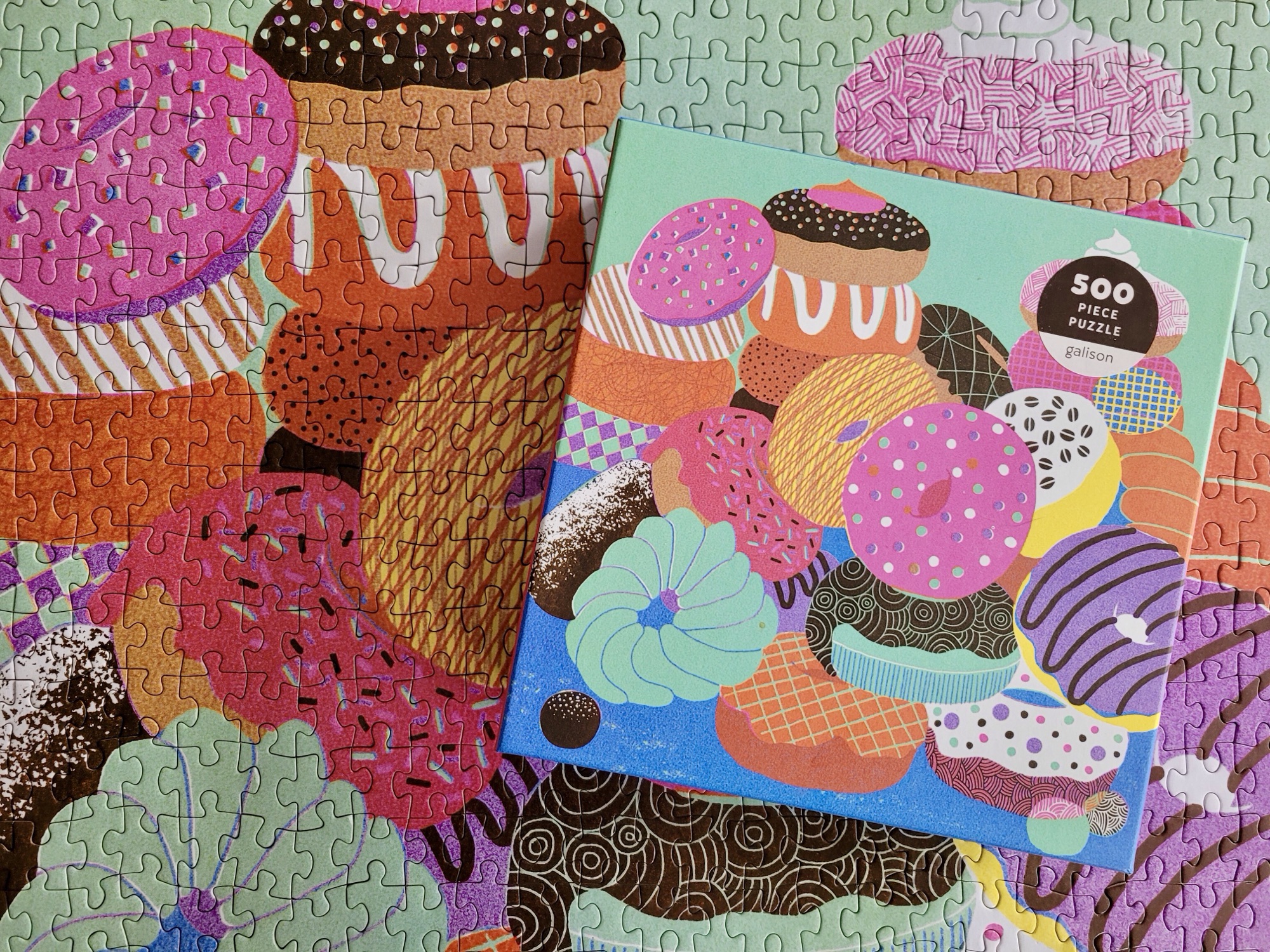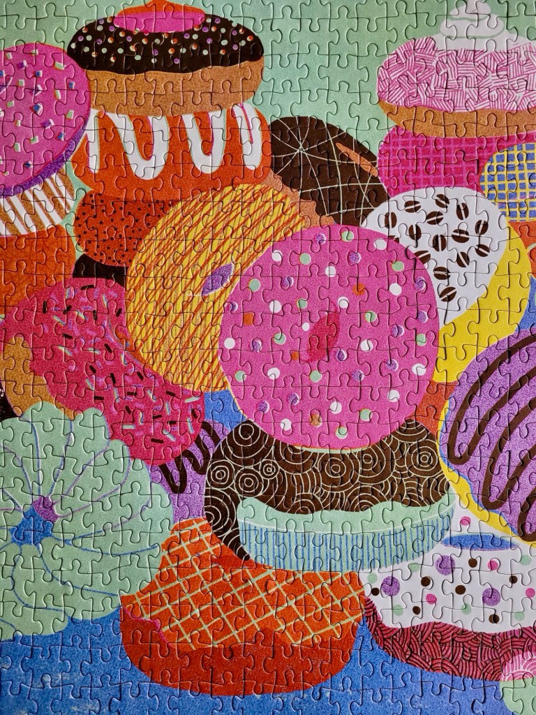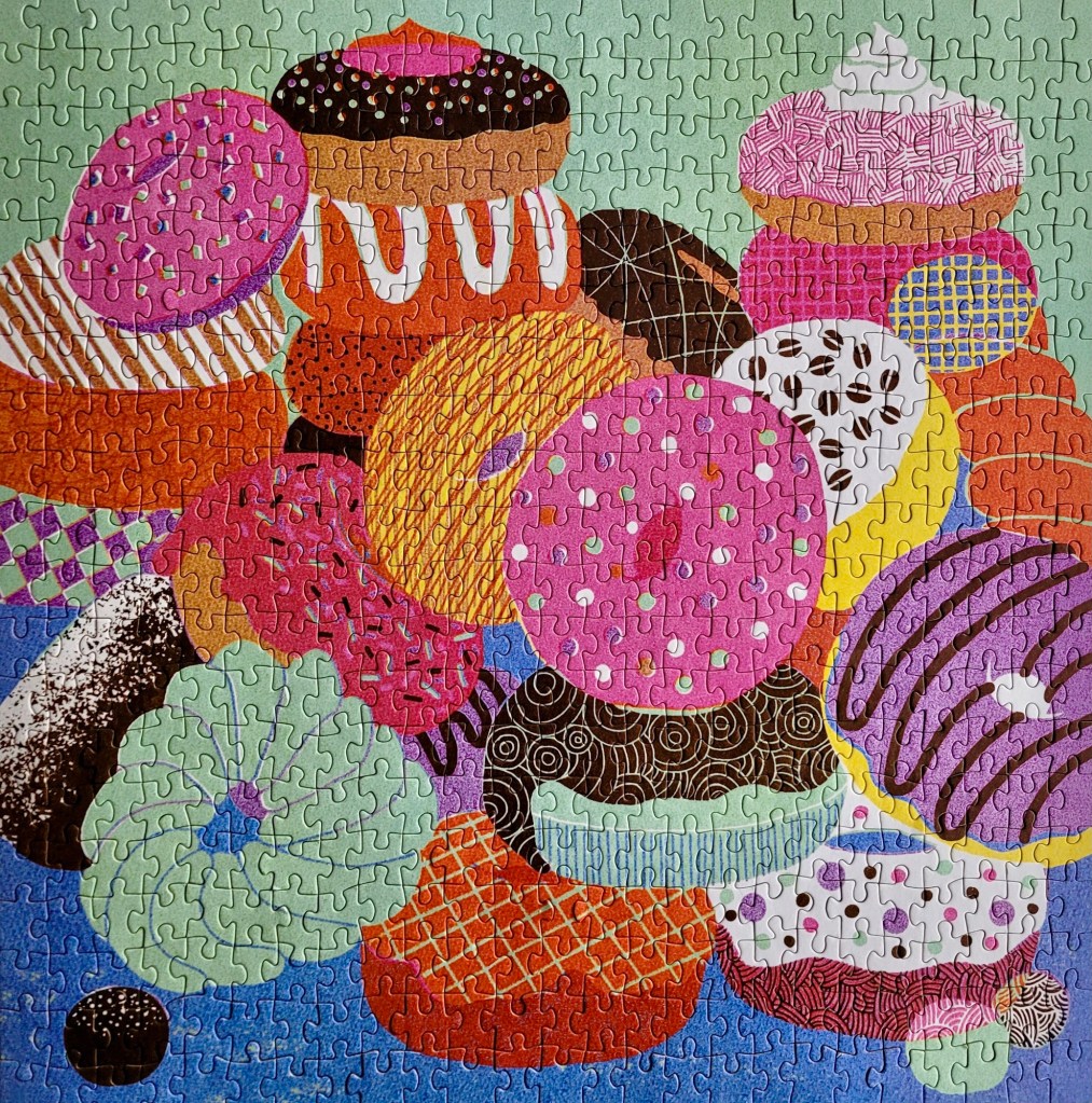 As I mentioned, this was a quick puzzle, meditative, relaxing and fun! It’s a 500 piecer from Galison, it’s complete and the colours and patterns were fabulous to work with. I also have a donut craving that just won’t go away!