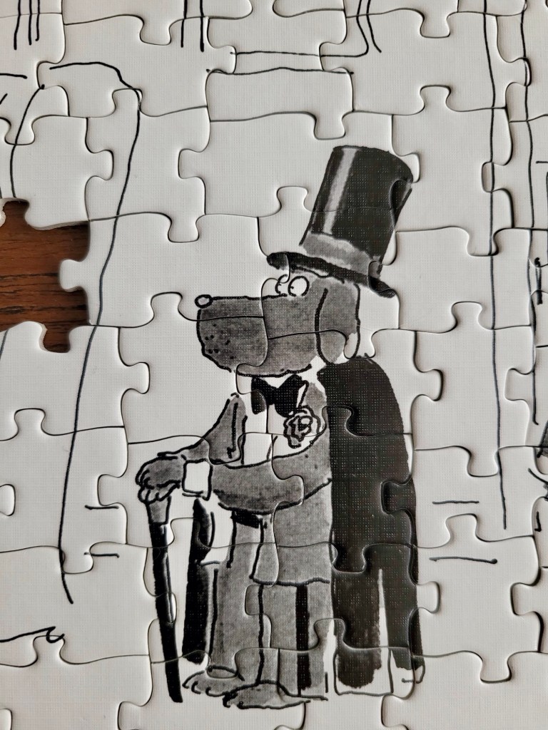 This little puzz was missing a few pieces so I passed it back on to the thrift store for someone else to have a good time exploring men’s fashion of bygone days.