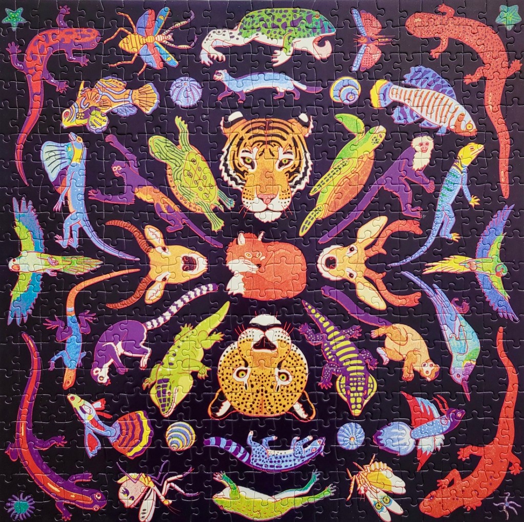 I really love the colours in this puzzle, and how the kaleidoscope pattern mirrors itself but not exactly, that’s a fun detail. This was a brand new 500 piecer and it was complete.