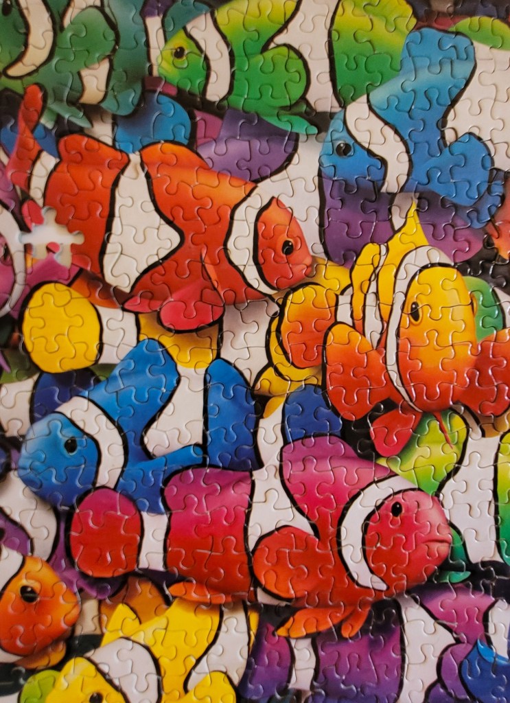 Naturally, in doing a puzzle like this, I did think about Finding Nemo, and replayed some of the goofy scenes in my head while assembling this. Funny how most people will jump to that movie reference if they see in image like this, how powerful pop culture can be!