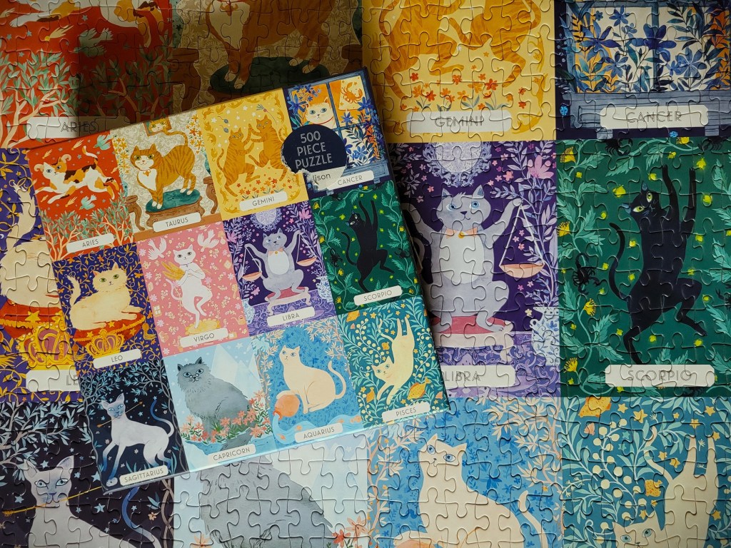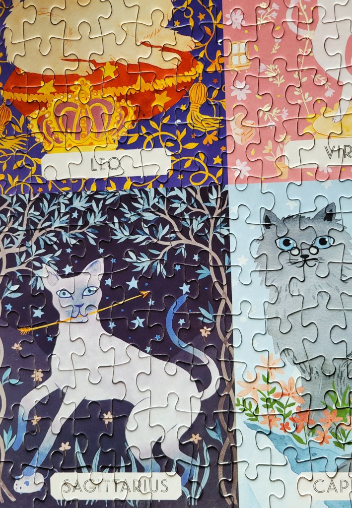 This is a fun and colourful 500 piece Galison puzzle that I picked up from the thrift shop a few months ago. I was missing an edge piece, but thankfully there because that way we don’t miss any zany cat details!