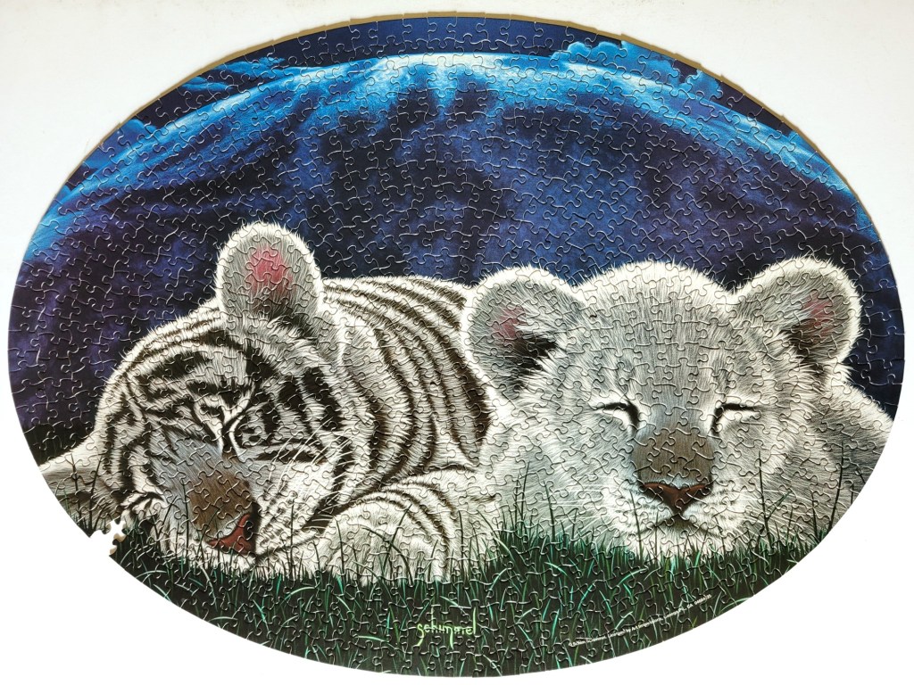 These sweet sleeping babies are just beautiful. I cannot express how much I love his work, there is such detail, and his love for nature and the planet is just so clear. As a cat lover myself, obviously his chosen subjects just speak to me, but he’s not all cats. Of course I found a wolf pup image in my mystery Schimmel puzzle. I have also found one with a dolphin and another one that is more of a safari collection of animals.
