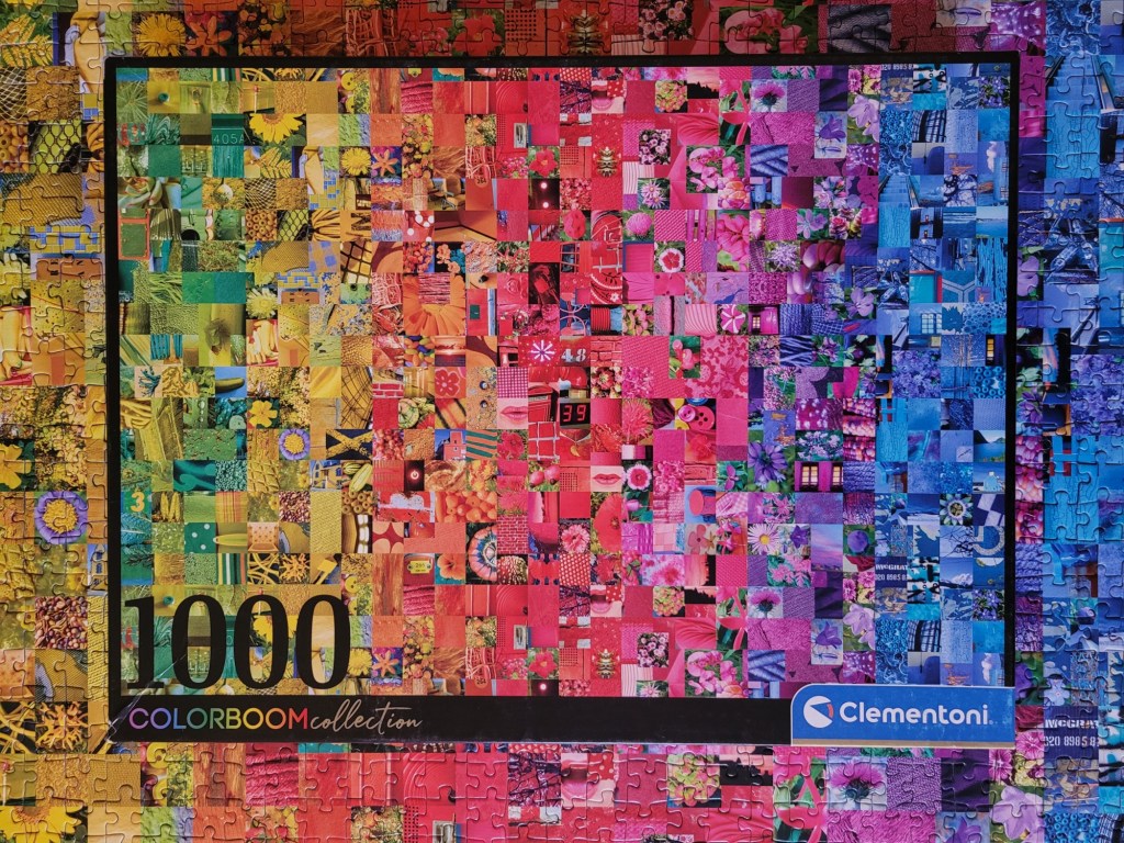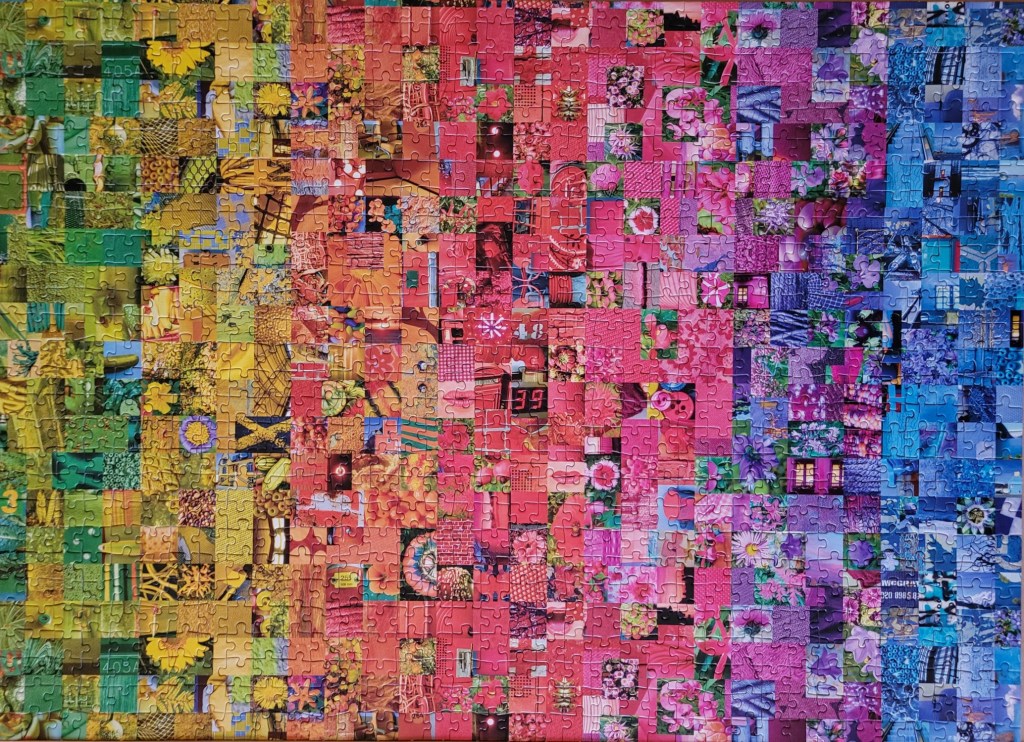 I love a photo collage, and I love a colour rainbow gradient, and I love puzzles that combine both! This particular collage is by the brand Clementoni, I believe they are an Italian brand. This is very similar to the 2000 piece Shelley Davies Rainbow puzzle released by Cobble Hill, and it was just as fun to put together.