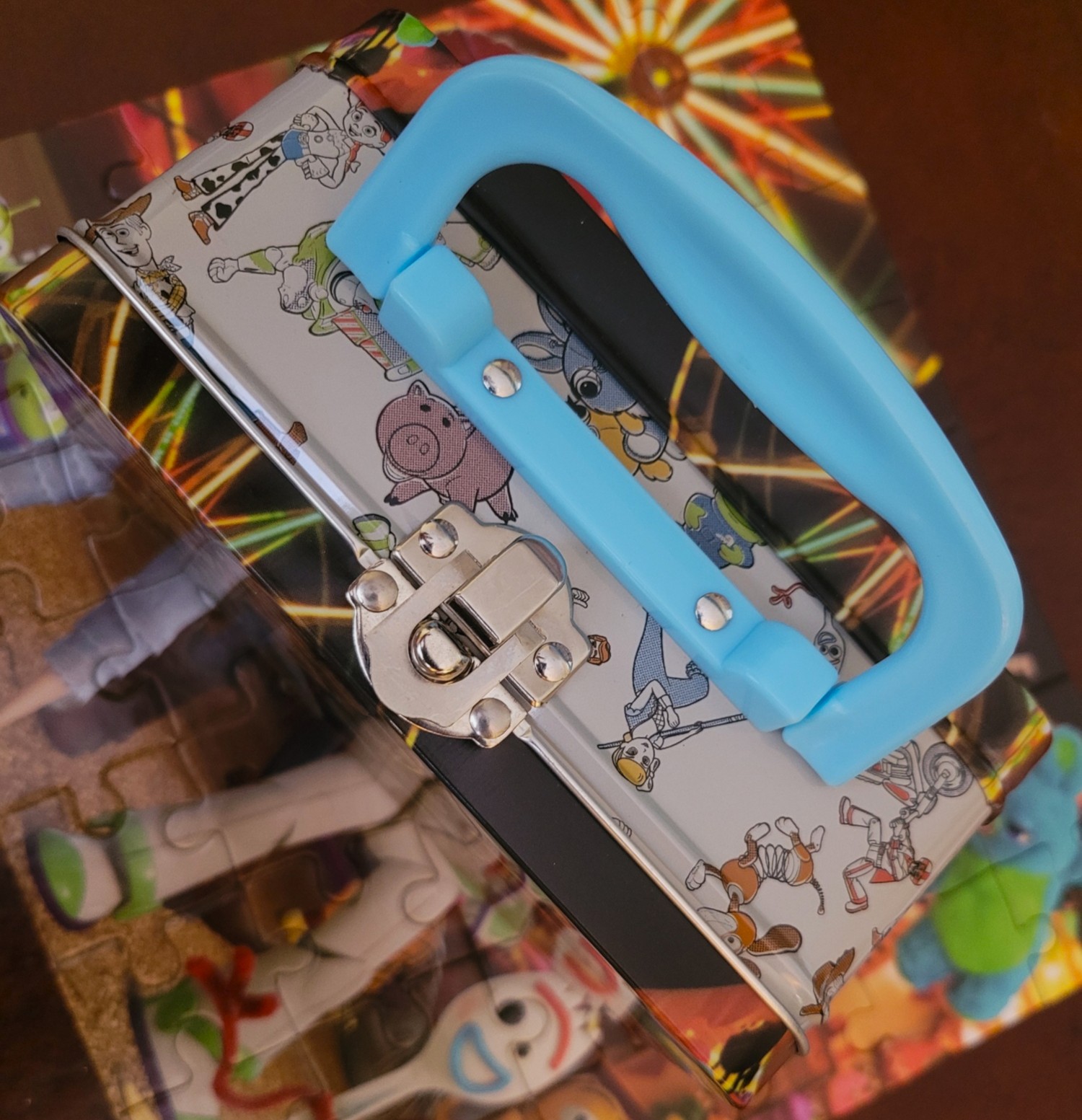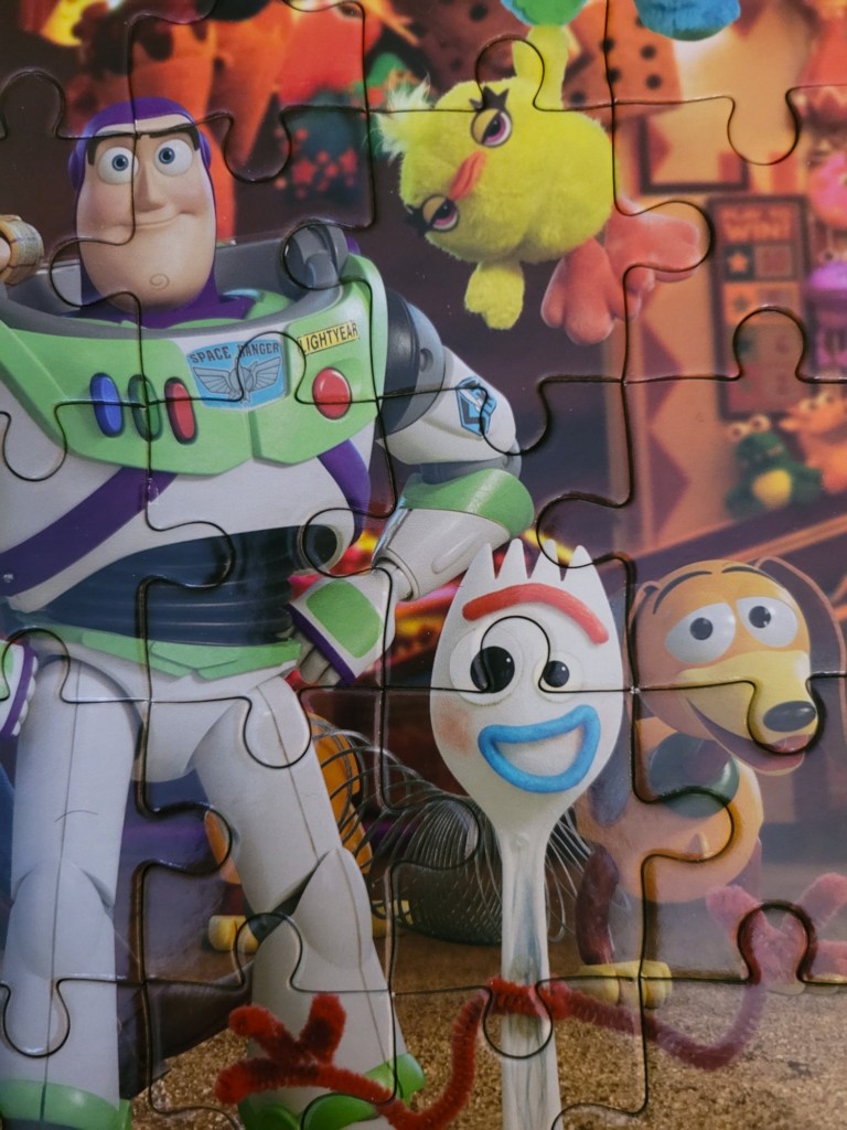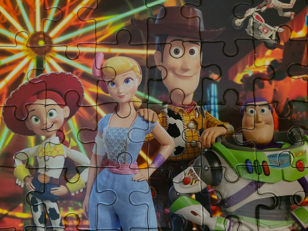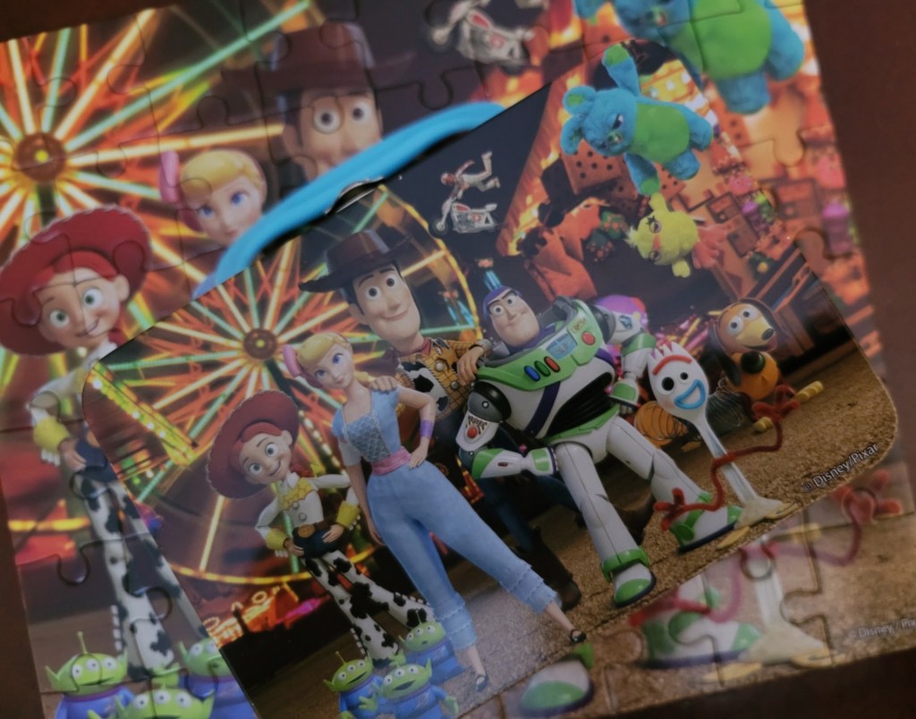 Today’s puzzle is a little 24 piece puzzle of the Toy Story characters that comes in a little tin lunch box. I picked this up in a bag deal at Value Village in New Minas. It was packed together in a bag with a vintage Springbok mini, stay tuned for that one. Normally I don’t complete the newer kids puzzles, but I was craving a puzzle moment and really only had a moment, so I decided to check this one out.