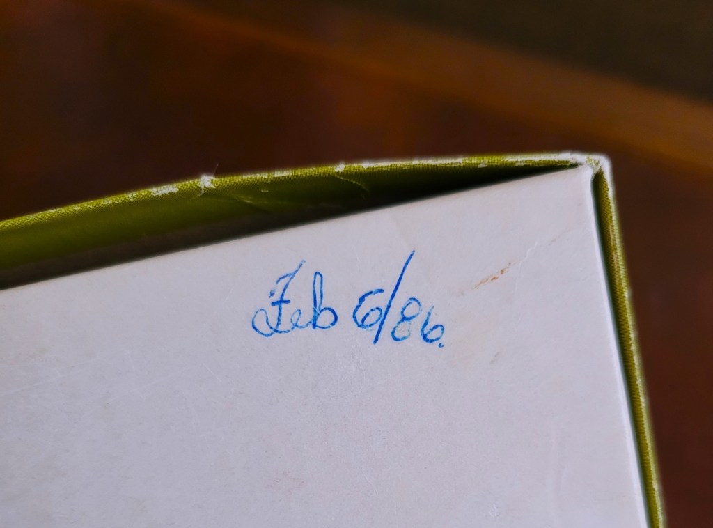 I think this dates back to 1986? There’s a little handwritten date on the back of the box, which was a little historical nugget!