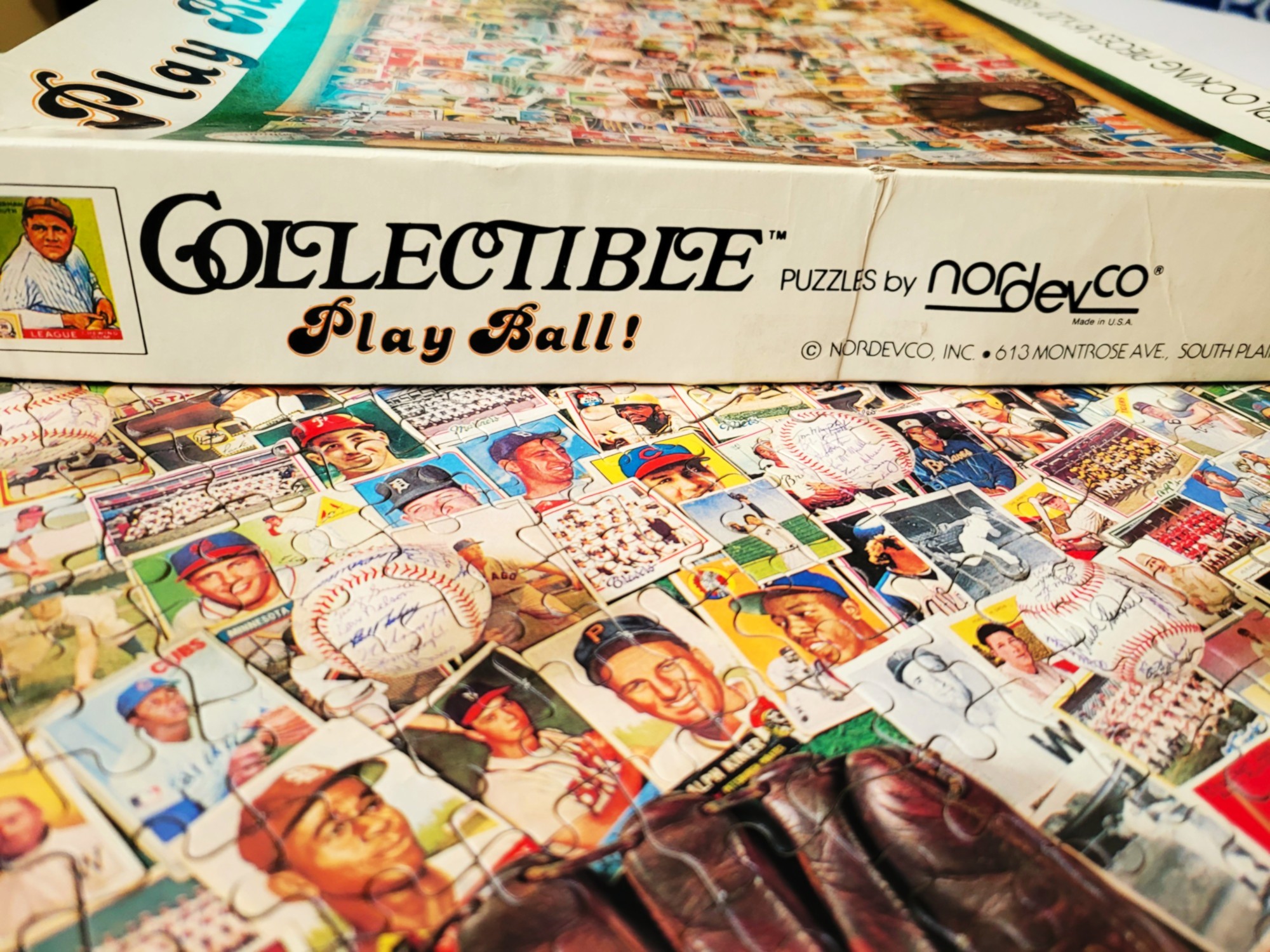 Anytime, I find a Baseball puzzle, I pick it up! This is one of two NorDevCo vintage Baseball puzzles that I’ve found in the past. Both different but somehow the same? Remember Baseball Trivia from last year? The Trivia puzzle was super tough, this one – Play Ball! – had a few more clues to make it much easier.