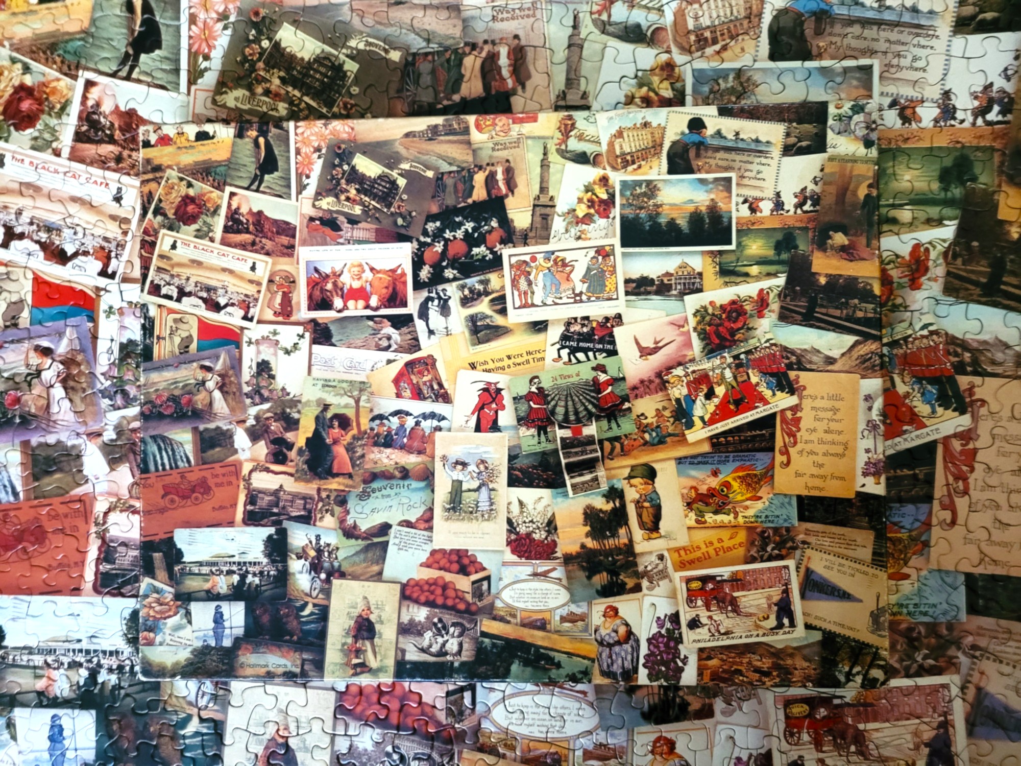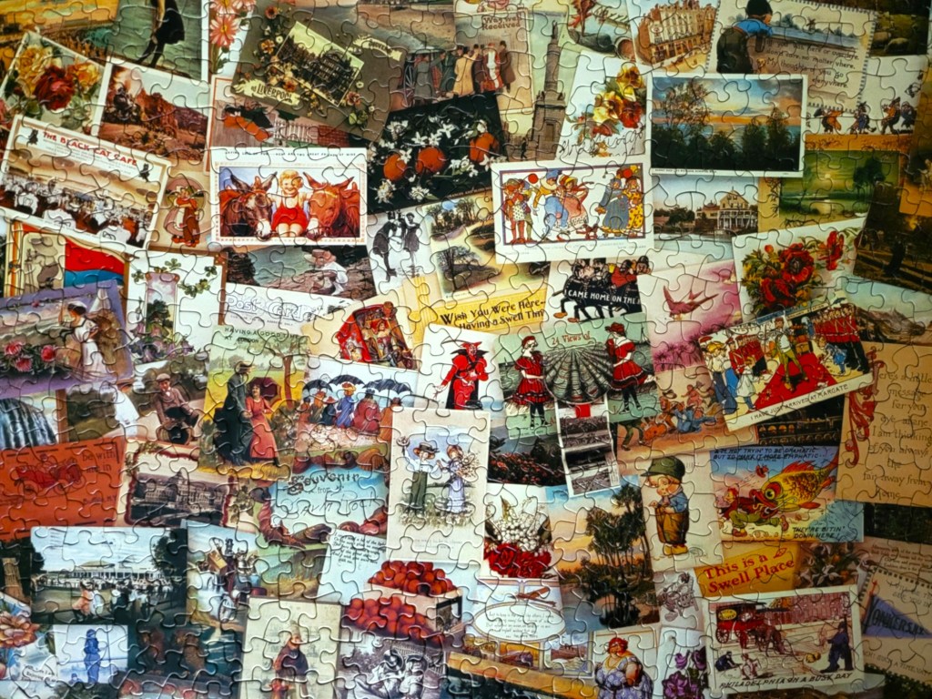 This collage image from Springbok in 1984, is full of nostalgic little cards and notes for loved ones from travellers on vacation. There are a lot of throwbacks to the Victorian era all the way up to the Art Deco era.