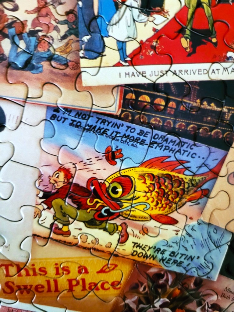 This puzzle was super fun to assemble, Looking for these little wacky details, textures, characters, colours, making little islands of puzzle pieces and then just filling in the blanks. Looking for all the little details is just such an engaging time.