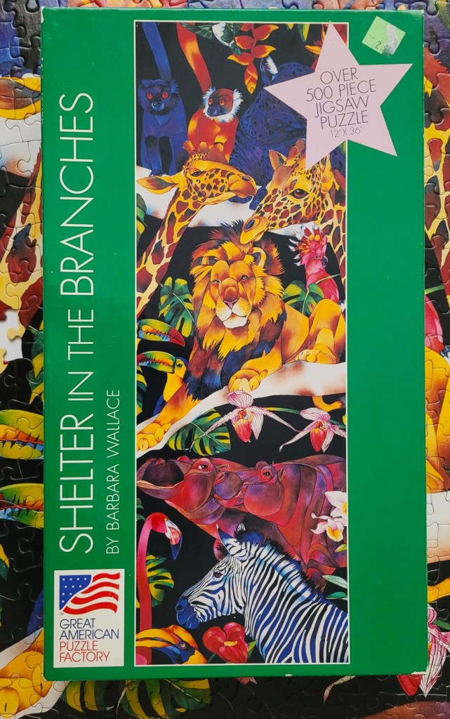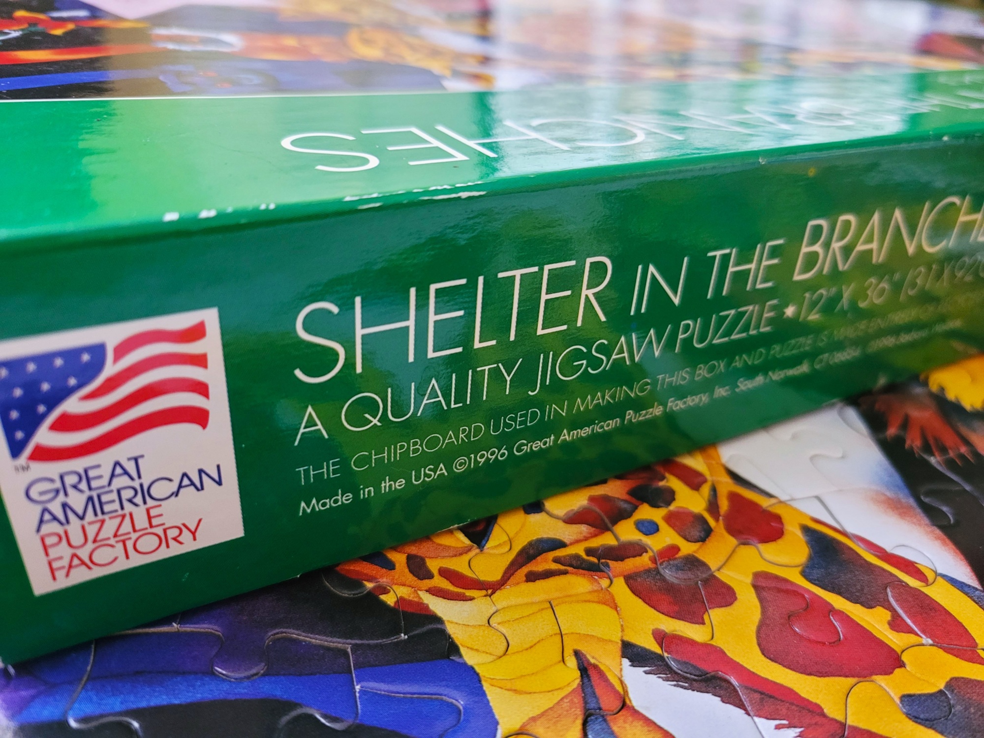 This puzzle dates back to 1996, it’s 500 pieces and I think it was missing 4 pieces, it can be a hard to tell when you’re dealing with a random cut puzzle, but it looks like 4 to me!
