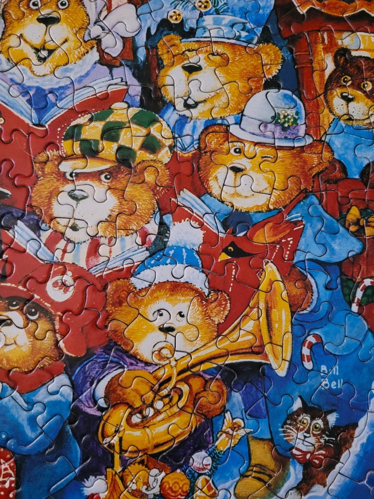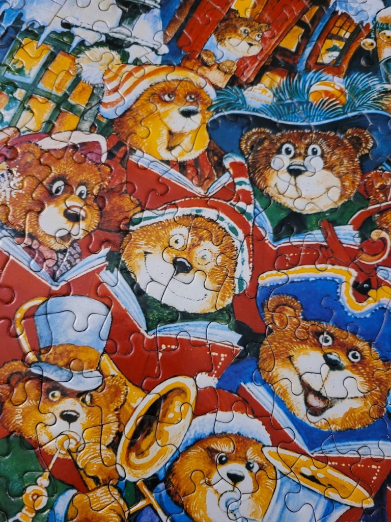 This is called Teddy Bear Christmas, so this is not a choir of bears, which would be a stretch of the imagination as it is. Picture a choir of teddy bears! It actually kind of reminds me of Teddy Bear Wedding from Ravensburger, last year. Am I really into teddy bears? No, but this is now part of a growing collection of teddy bear puzzles that I have completed recently.
