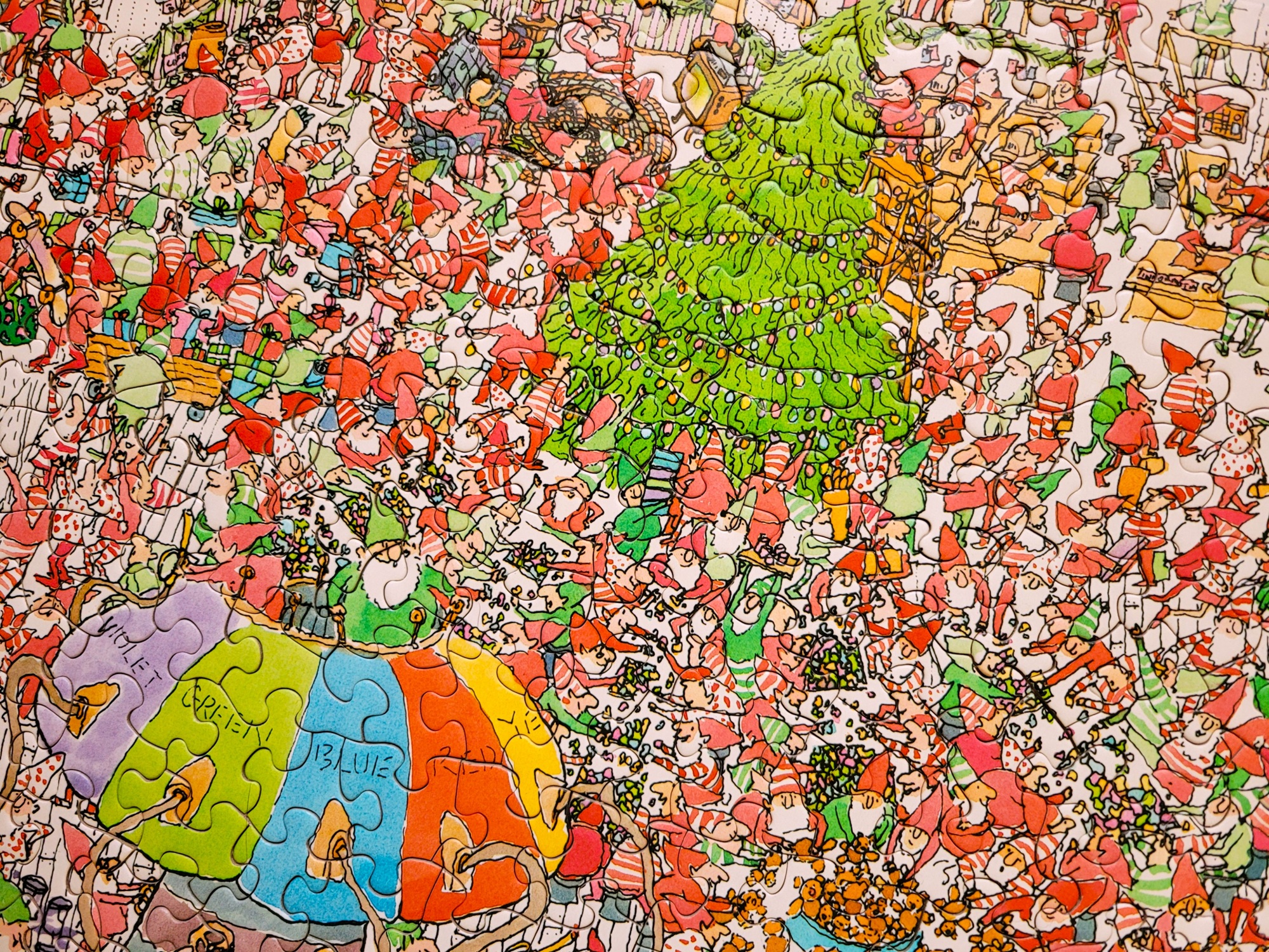 What’s not to love here? A Waldo style illustration of Santa’s workshop in full swing!