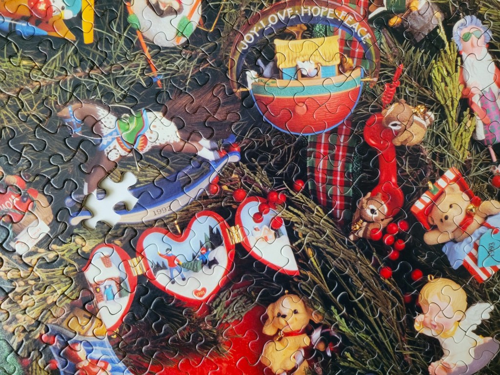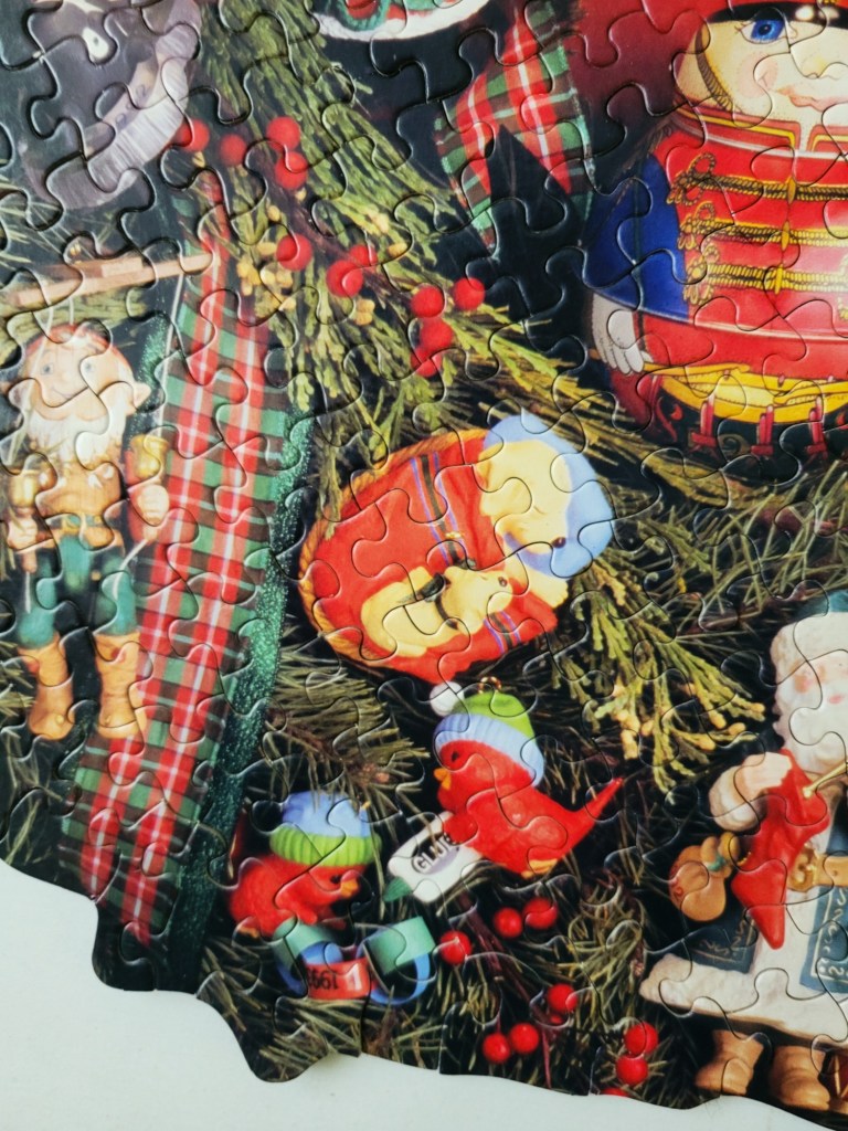Sadly, I was missing a piece, but if I come across this puzzle again, I will pick it up. It’s so sweet and charming. I’m really starting to warm up to these Keepsake ornament puzzles. I don’t want any Keepsake ornaments, but I’ll puzzle them!