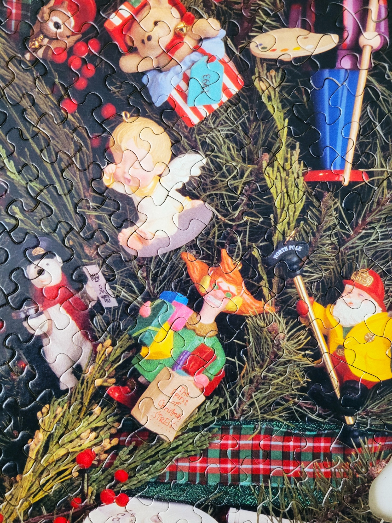 Sadly, I was missing a piece, but if I come across this puzzle again, I will pick it up. It’s so sweet and charming. I’m really starting to warm up to these Keepsake ornament puzzles. I don’t want any Keepsake ornaments, but I’ll puzzle them!