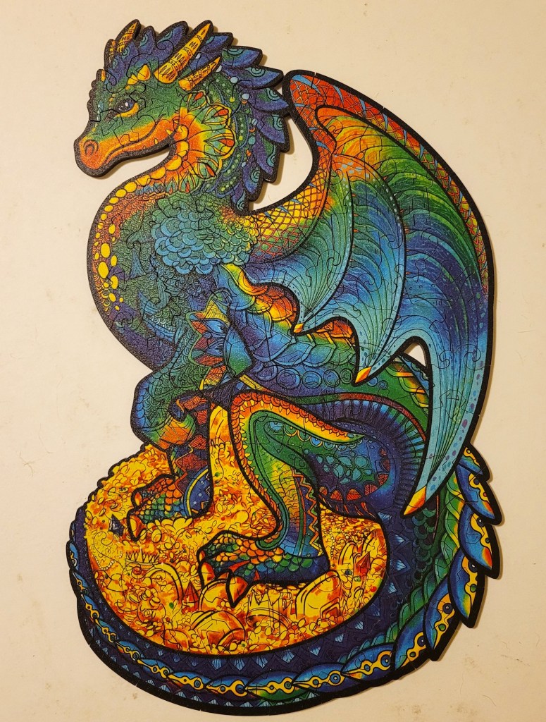 Naturally, this one had me thinking about Smaug and the Hobbit. I think that is the only book that I’ve ever read that had a dragon in it. There you go, it’s not totally outrageous for me to buy a dragon puzzle.