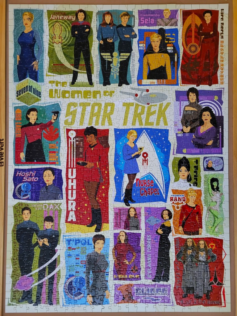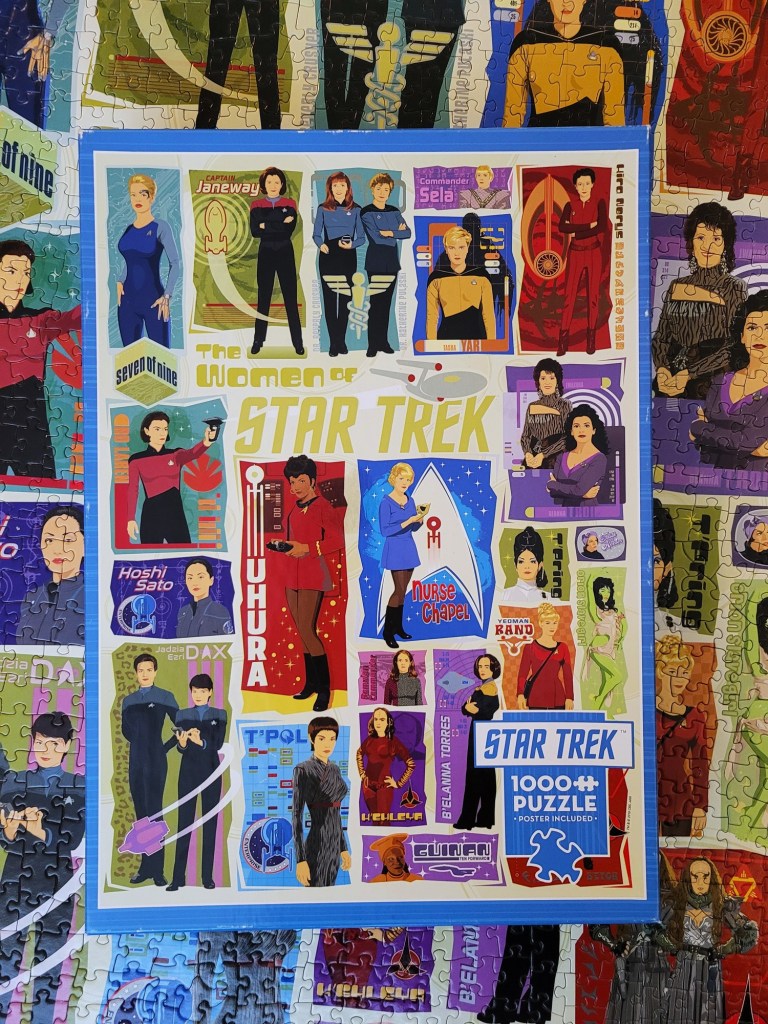This puzzle has seen my puzzle board before, but it was acquired in a Marketplace deal, 6 Star Trek puzzles (5 of which are vintage from Springbok, Golden, and F.X. Schmid!) So, I decided to assemble it first and pass this on to clear out some of my puzzle collection.
