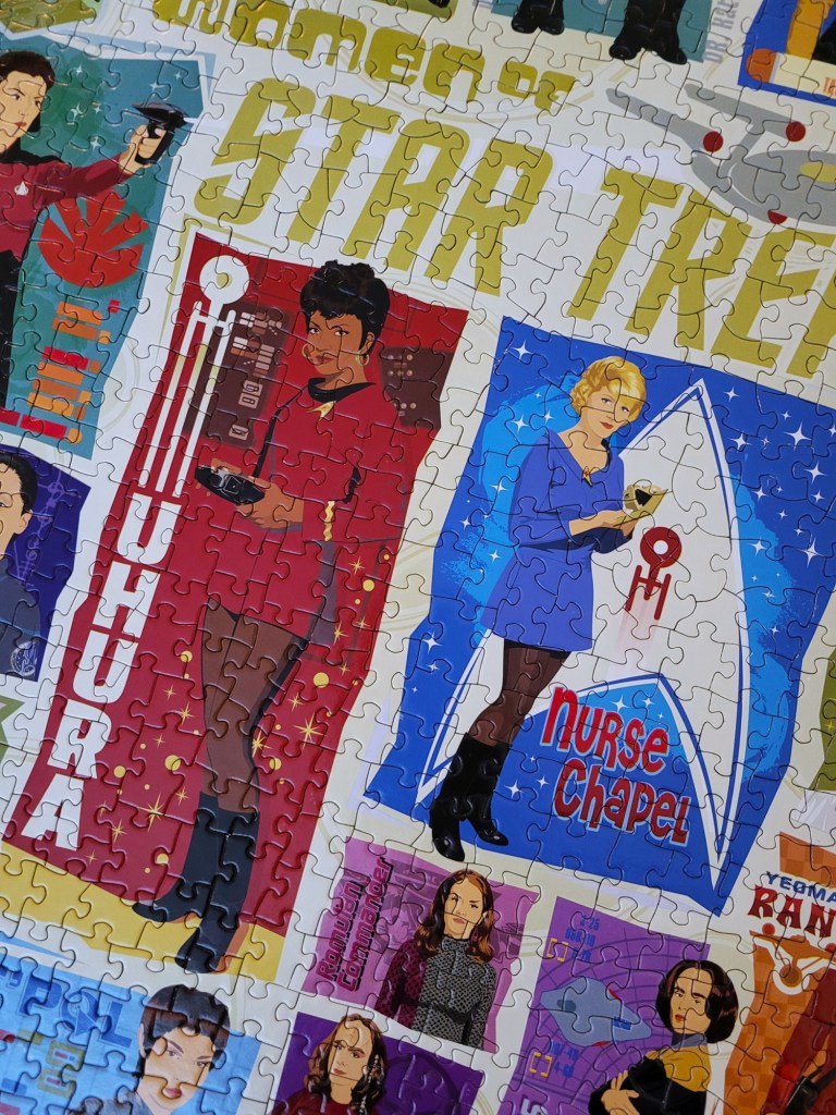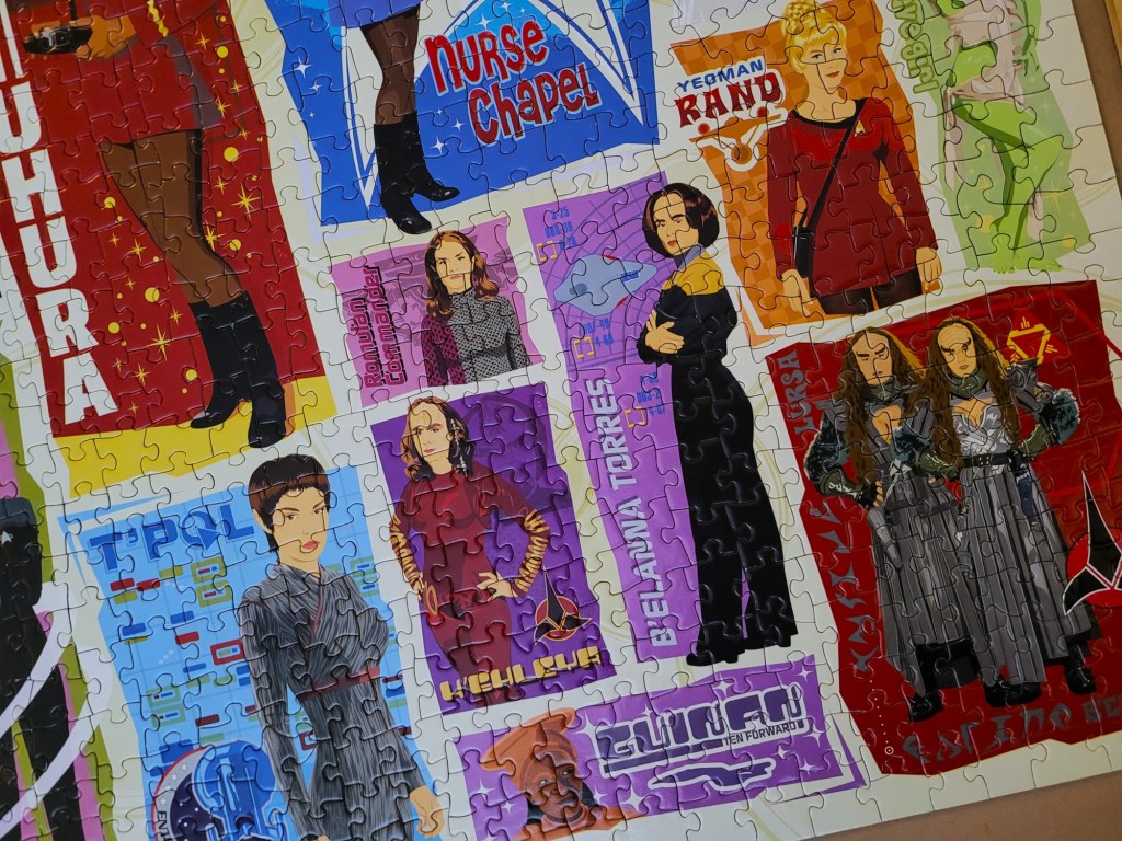 Now I haven’t seen other series spin-offs, apart from the Next Generation and the original series, so I will say that I am not familiar with about half of these characters. But that’s not going to stop me from doing this puzzle. I love that it’s illustrated and the bright pops of colour and the varying backgrounds.