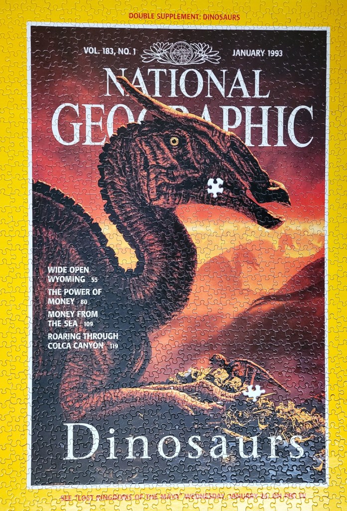 When I was a kid, my parents used to get the National Geographic Magazines and I have memories of this exact cover. This was before Jurassic Park came out but I was already keen on dinosaurs and I was really excited to look inside this issue.