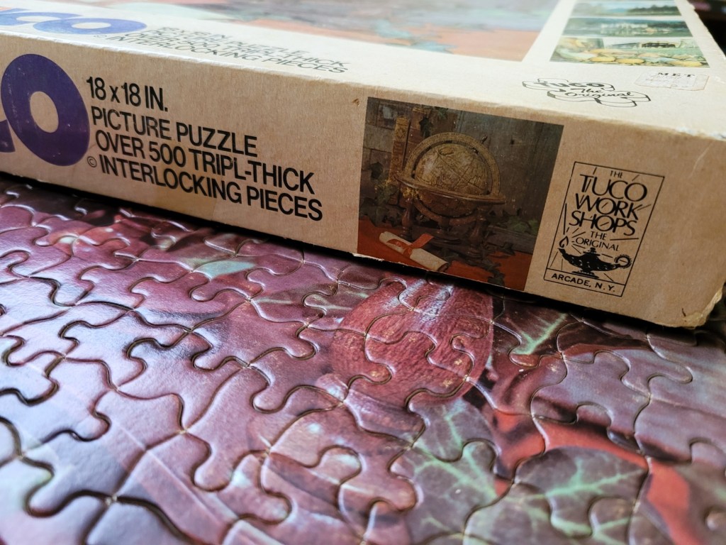 Tuco, the unicorn brand of vintage puzzles. The images are usually very generic, but these puzzles are some of my absolute favourites. It’s all in the tripl-thick cut pieces and their wacky pieces shapes. I will never tire of Tuco puzzles.